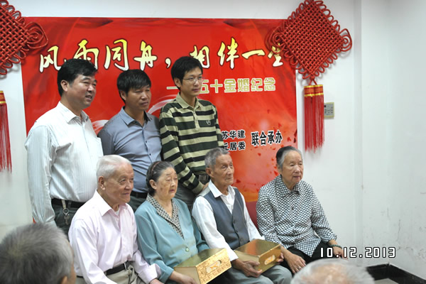 公司與居會委聯合舉辦“五十金婚紀念”活動 時間:2013-10-12 6126 10月12日,中國傳統節日“重陽節”前夕,上海分公司與承建的洛克外灘源項目所在地的虎丘居委會聯合舉辦“五十金婚紀念”活動,大力弘揚中華民族尊老愛老的優良傳統美德,也是公司與地方政府開展聯建共建活動的重要成果。上海分公司總經理助理、工會副主席陳德權還代表公司向居委會轄區內60對金婚夫婦贈送了由江西景德鎮特制的象征“幸福”、“長壽”的茶杯。