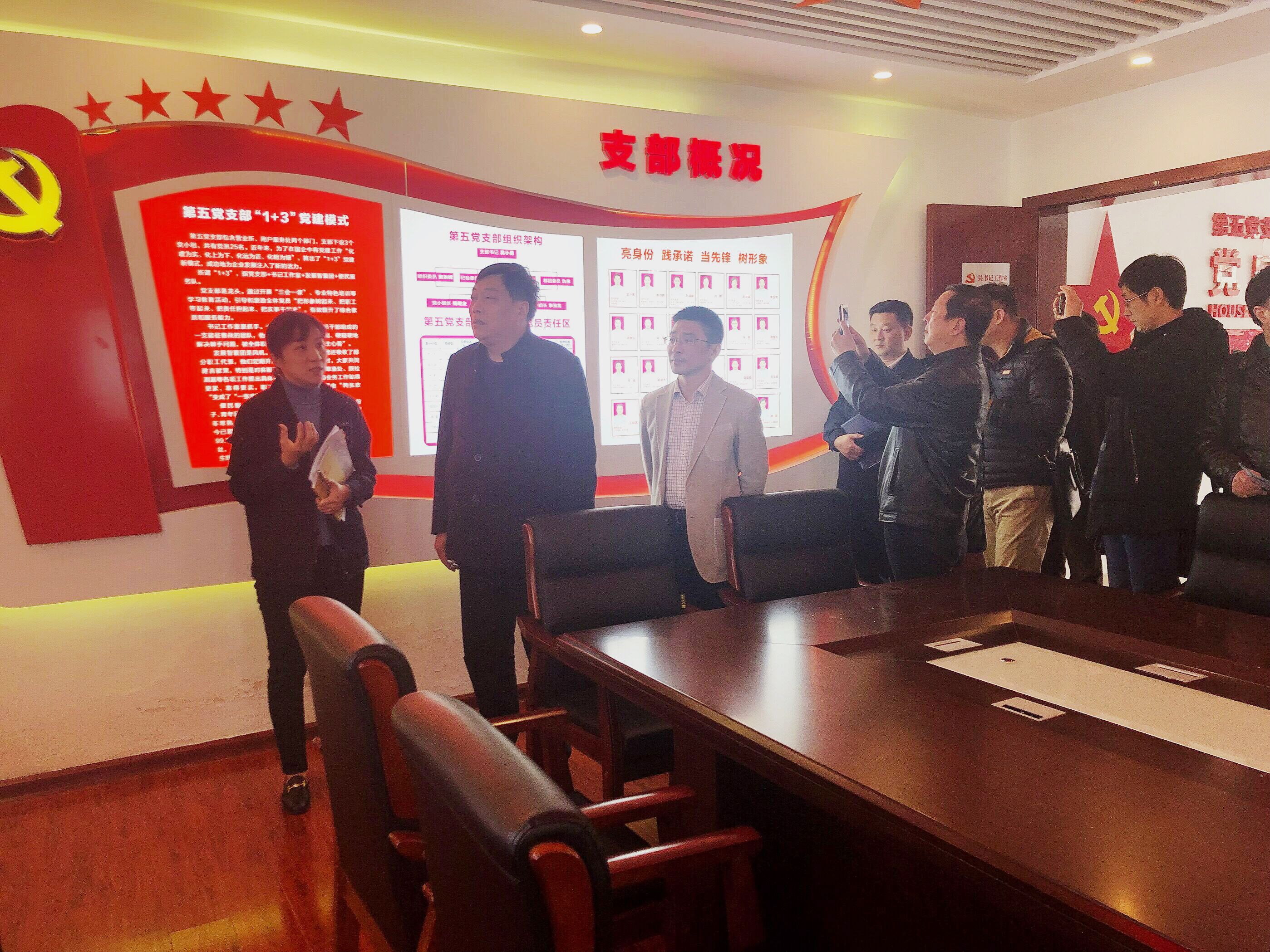 錢啟明一行參觀了長江水務公司服務大廳、第五黨支部黨員之家和吳書記工作室。通過觀摩工作室的“1+3”黨建模式,實地了解“支部概況”“兩學一做”“黨員園地”“學習園地”等板塊展示,深入學習了第五黨支部的特色黨建工作成果。