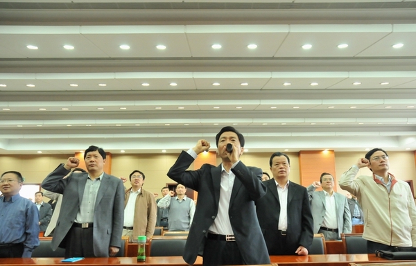 5月27日上午,建工控股公司機關、華建總部黨員干部和揚建、揚安、華宏、中專校等單位領導班子成員及黨務、紀檢、財務、行政等部門中層負責人共80多人,到揚州市警示教育基地參觀接受教育,大家觀看了預防腐敗警示教育宣傳圖片、電視專題片和違法犯罪人員現身說法錄像。建控公司黨委書記、董事長陸金龍在參觀結束前作了誡勉講話,指出這次建控系統組織黨員干部開展廉潔自律警示教育活動,是加強干部能力作風建設的一項重要內容。一系列反面案例帶來的教訓和思考,令大家深受觸動。見不賢而內自省。建控系統廣大黨員干部要從確立正確的角色定位、樹立合理的人生追求、建立完善的制度保障、打造健康的從業環境四個方面入手,進一步加強廉政教育、樹立自律意識、保持清廉本色,從而提高干事業、謀發展的能力和水平,為創建“三個揚州”、建設和諧社會作出應有貢獻。最后,陸金龍同志帶領大家集體進行了莊嚴的廉政承諾宣誓。