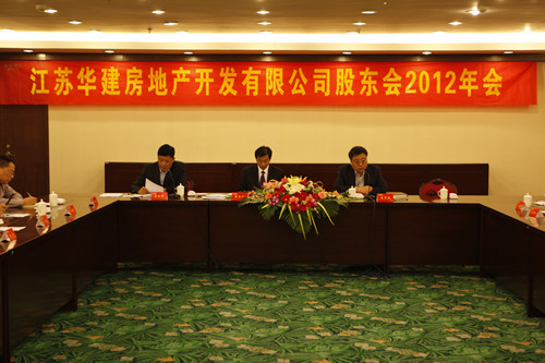 5月8日,江蘇華建房地產開發有限公司股東會2012年會在揚州召開。股東代表和董事會、監事會成員參加了會議。會議聽取并審議了吳士茂總經理所作的經營層工作報告、總會計師李長棟所作的《2011年度財務報告、分配方案及2012年財務預算方案》的報告。