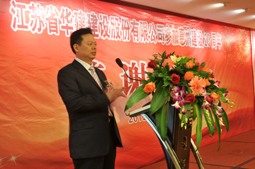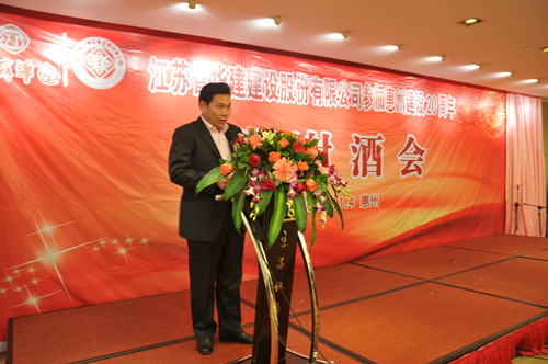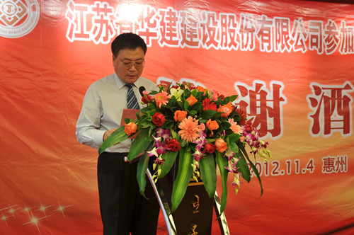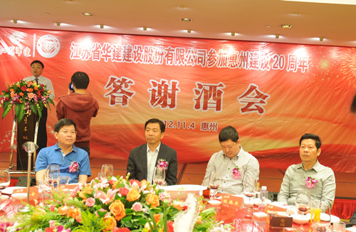 11月4日,公司在惠州隆重舉辦參加惠州建設(shè)20周年答謝酒會(huì),副董事長(zhǎng)、總經(jīng)理宗有農(nóng)主持并作開場(chǎng)致辭。惠州市有關(guān)政府部門、部分合作方企業(yè)的負(fù)責(zé)人,華建聯(lián)盟成員單位負(fù)責(zé)人,公司董事、監(jiān)事和高管等130余人出席酒會(huì)。惠州公司總經(jīng)理華恒榮介紹了公司參加惠州建設(shè)二十年的有關(guān)情況。惠州市工商聯(lián)主席、恒宇實(shí)業(yè)發(fā)展公司董事長(zhǎng)楊滿芳代表合作方發(fā)言,惠州市住房和城鄉(xiāng)規(guī)劃建設(shè)局副局長(zhǎng)陳訓(xùn)政代表政府主管部門致辭,分別對(duì)江蘇華建進(jìn)惠施工二十周年表示祝賀。公司董事長(zhǎng)陸金龍代表總部對(duì)惠州市有關(guān)政府部門、相關(guān)合作方和社會(huì)各界人士給予公司的關(guān)心和支持表示誠(chéng)摯的感謝,并表達(dá)了進(jìn)一步加大支持力度、加強(qiáng)戰(zhàn)略合作、加快科學(xué)發(fā)展的意愿。