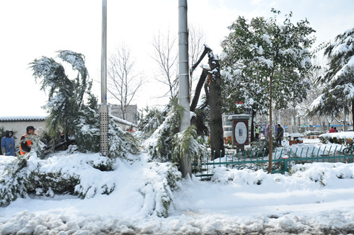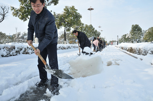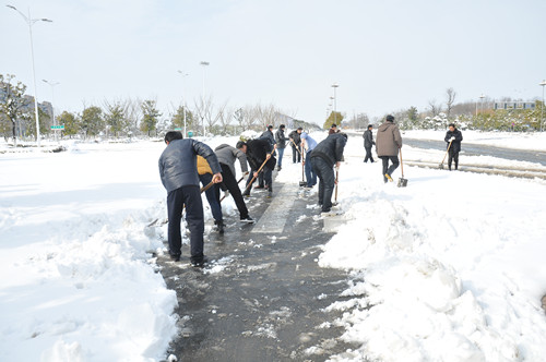 公司總部組織員工上路清掃積雪 時(shí)間:2013-02-19 4128 2月18日至19日凌晨,揚(yáng)州出現(xiàn)低溫降雪災(zāi)害天氣,降下了多年罕見的一場大雪,壓垮樹枝和部分房屋設(shè)施,并造成道路交通不便。19日清晨,公司響應(yīng)市政府號召,組織20余名員工上路清掃積雪,公司領(lǐng)導(dǎo)吳士茂、錢啟明親自參加,與大家共同會戰(zhàn)2個多小時(shí),完成了清掃任務(wù)。 厚重的積雪壓垮樹枝