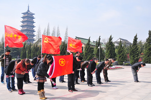 總部開展祭掃革命烈士墓活動 時間:2013-04-03 4299 4月3日,總部機關黨支部和團委聯合開展祭掃革命烈士墓活動,總部機關、華建置業20余名同志參加。紀委副書記、黨辦主任陳緒寶主持活動,副總經理兼總工程師程杰帶領大家向烈士紀念碑三鞠躬,并敬獻了鮮花,隨后大家共同參觀了烈士英雄事跡展。