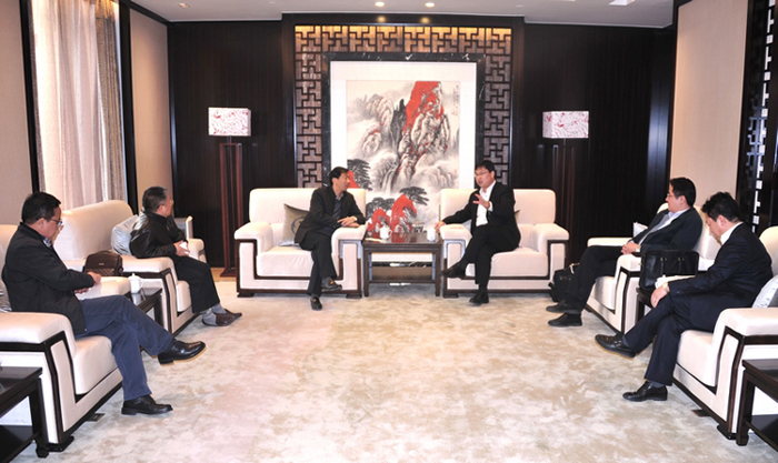 陸金龍董事長與九鼎投資高管洽談項目合作 時間:2013-11-21 5546 11月20日,陸金龍董事長在公司企業展示中心會見了昆吾九鼎投資管理有限公司合伙人岳錦、副總裁朱成彥等高管一行。 在展示中心會客廳,雙方互相介紹了各自公司的發展概況,就西安曲江項目的合作進行了洽談,同時雙方還對企業的管理理念、分配機制以及投融資等方面進行了交流。揚州現代金融投資集團副董事長、總經理劉研、公司高管程杰、陸俊等陪同參加。