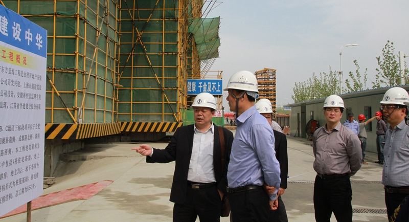 聞道才副市長赴安徽分公司視察東方藍海項目 時間:2014-04-11 3380 4月10日下午,揚州市副市長聞道才一行赴安徽分公司視察了合肥東方藍海B、C組團三標段項目。公司副總經理陸俊、副總經理、惠州公司總經理華恒榮陪同參加。 在項目現場華恒榮副總經理向來訪領導簡要介紹了江蘇華建在安徽市場的發展戰略及東方藍海B、C組團三標段項目的施工情況。聞市長對施工現場、施工組織非常滿意,并再三強調要抓好安全工作,爭創優質工程,為揚州建筑業在安徽市場的發展做出積極貢獻。