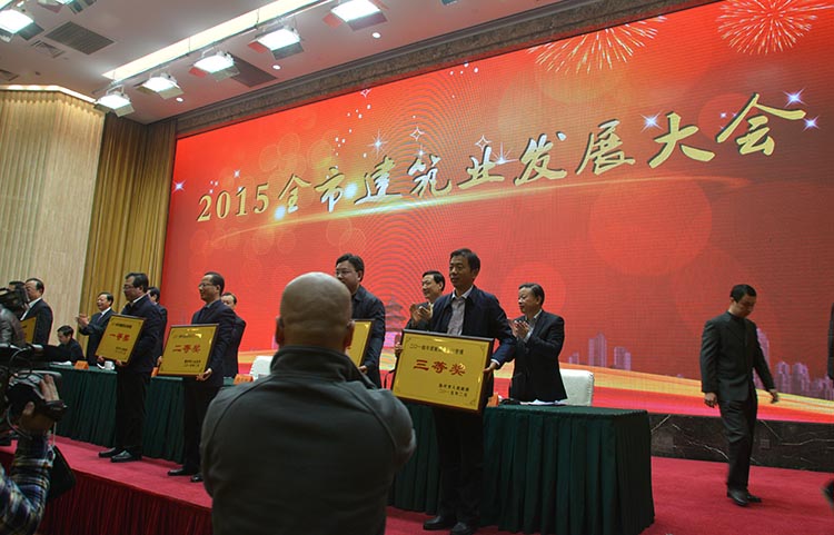 江蘇華建獲評揚州市建筑業先進企業 時間:2015-02-25 3455 2月25日,揚州市委、市政府召開全市建筑業大會,總結2014年全市建筑業工作并部署2015年工作。陸金龍董事長、宗有農總經理出席會議。會上江蘇華建被表彰為2014年度揚州市建筑業先進企業;建工控股公司獲市政府建筑業目標管理獎三等獎;宗有農總經理被授予2013-2014年度揚州市建筑功勛獎章,胡華兵等2人榮獲揚州市建筑業先進個人等榮譽稱號。