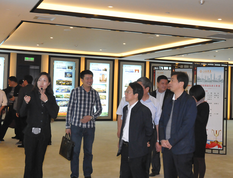 在公司企業展示中心,陸金龍董事長與吳榮勝區長進行了友好會面。雙方就廣安官盛新區幸福家園項目工程進展情況以及下一步工作計劃進行了溝通。吳榮勝區長對華建全力以赴支持廣安建設表示感謝,他認為華建與廣安的合作非常有成效,工程質量高、速度快,效果好,得到上級領導、人民代表、干部群眾的一致認可,也在廣安大地上樹起品牌,贏得口碑,希望雙方目標和關注點高度一致,相互溝通,增進了解,增強互信,愉快合作,區委、區政府將竭盡全力做好溝通協調,為工程項目順利開展提供保障,同時希望與華建及聯盟企業多領域、深層次合作,共同建設好新廣安。陸董事長對吳區長一行的來訪表示熱忱歡迎,他表示廣安區的領導班子是一個會干事業、團結奮進的集體,新區的建設也必將為下一代留下寶貴財富。華建與廣安區溝通順暢,精誠合作,公司將和廣安區一起面對困難,迎接挑戰,并一如既往做好工程質量,確保序時進度。總部將為該項目提供全方位支持,同時還將帶領聯盟企業和廣安在產業合作、地產開發、施工管理等多方面深層次合作,共同為小平家鄉建設添磚加瓦。
