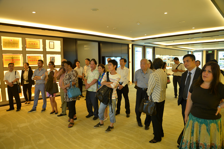 9月13日上午,來揚參加“中外絲路城市美食文化交流——揚州活動周”的一批外國友人,越南、文萊、緬甸、秘魯、毛里求斯、湯加王國、津巴布韋、韓國等國駐華大使(公使)、參贊、商務領事和意大利、阿爾巴尼亞有關官員,以及中國公共外交協會、中國——東盟中心、察哈爾學會負責人,包括香港衛視、大公報、中國新聞社、中國日報社、中國人民廣播電臺、中國網、意大利24小時太陽報的媒體記者等約40人,在市外事辦公室主任鄧清和江蘇華建董事長陸金龍陪同下,專程到江蘇華建展示中心參觀考察,并希望江蘇華建作為中國建筑業的品牌企業,能夠借助“一帶一路”國家戰略,發揮自身的實力優勢,到國外市場進行戰略合作。陸金龍董事長在餐敘前的講話中進一步介紹了華建的實力和戰略構想,表達了拓展海外市場的意愿。最后中國公共外交協會副會長呂鳳鼎、中國——東盟中心秘書長楊秀萍女士分別講話,盛贊江蘇華建輝煌的歷史、卓越的品牌、強大的規模實力以及在接待服務中展示出來的大企業的水平。呂會長說江蘇華建給他留下了深刻的印象,希望華建取得越來越大的成就。楊秘書長說,華建在走向改革開放之初的深圳開創了成功的事業,中國——東盟中心愿意為中國和東盟企業的發展牽線搭橋,找到雙方共贏的平臺,希望外國企業在中國找到發展商機,中國企業在國外找到合作良機。