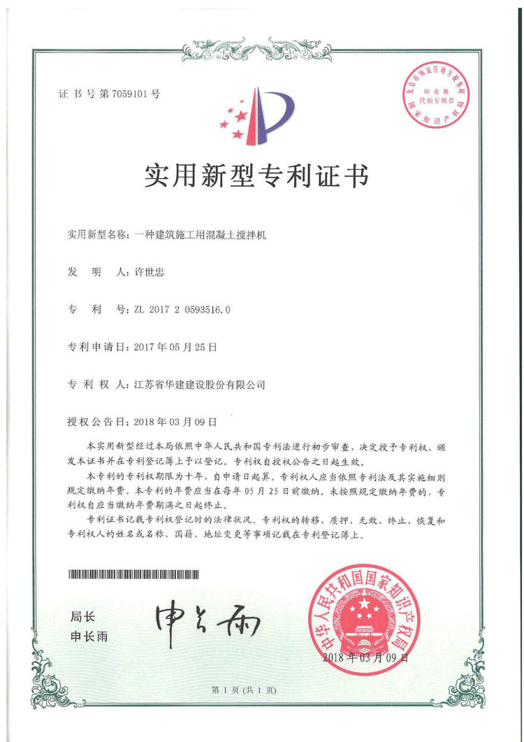 日前,從國家知識產(chǎn)權(quán)局傳來喜訊,江蘇華建再次榮獲1項發(fā)明專利和9項實用新型專利,截至目前,公司共獲得發(fā)明專利26項,實用新型131項,這標(biāo)志著公司研發(fā)創(chuàng)新實力再上新臺階。