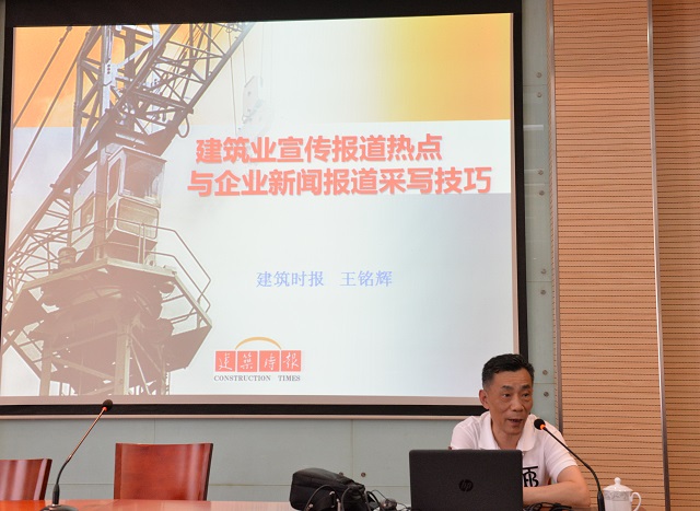 培訓(xùn)班邀請《建筑時(shí)報(bào)》運(yùn)營和宣傳總監(jiān)王銘輝圍繞建筑業(yè)宣傳報(bào)道熱點(diǎn)及企業(yè)新聞報(bào)道采寫技巧進(jìn)行系統(tǒng)講解,王銘輝結(jié)合自己的專業(yè)和工作實(shí)際,從新聞報(bào)道的標(biāo)題、導(dǎo)語、主體、結(jié)尾四大要素娓娓道來,深入淺出地講解了一篇優(yōu)秀的新聞報(bào)道是如何打磨而成的。培訓(xùn)中輔以大量的實(shí)例,更加貼合建筑行業(yè)報(bào)道的實(shí)際,進(jìn)一步提升了員工的文字功底、新聞采寫和攝影能力。