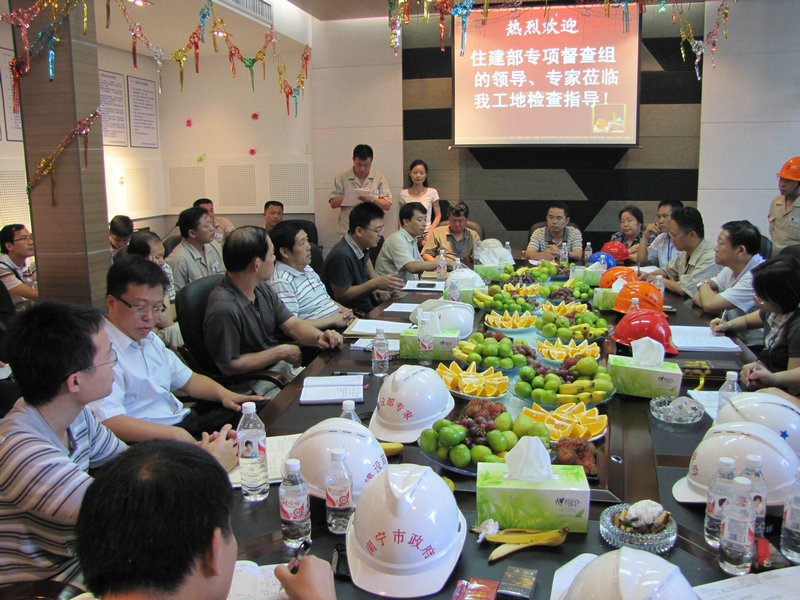 住建部建筑施工安全專項督查組檢查指導廣西麗原•天際城項目 時間:2010-10-14 5263 9月18日上午,國家住房城鄉建設部建筑施工安全專項督查組蒞臨我公司廣西麗原·天際城工地檢查指導工作,勘察了施工現場的實體安全狀況,查閱了施工質量安全技術資料,檢查了我公司的資質、安全許可、三類人員與特種作業人員持證的情況。項目部的安全防護與文明施工工作受到了督查組的一致好評,住建部工程質量安全監管司王樹平副司長在知道我們爭創“魯班獎”的情況后,提出了許多寶貴的意見,并預祝我們的質量目標得以圓滿實現。 另訊,此前麗原·天際城工程項目被評為2010年上半年廣西自治區文明工地。