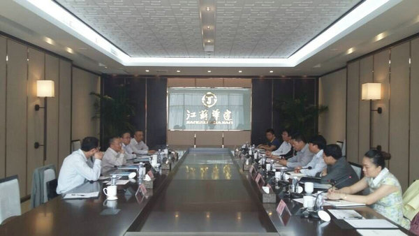 海建集團總裁吳亞春一行赴華建總部考察交流 時間:2015-10-19 4215 10月18日上午,海南省建設集團有限公司總裁吳亞春一行赴公司總部考察交流,公司常務副總程杰、海南公司副總高家馴及相關部門負責人參加接待交流。交流會上,程總介紹了公司的發展歷程和基本情況,雙方就蘇瓊兩地建筑施工企業發展、用人機制、分配機制和管理理念等方面分享各自的經驗與不足,并就尋求深度合作交流了意向,整個交流會氣氛活躍,雙方都感到受益匪淺。