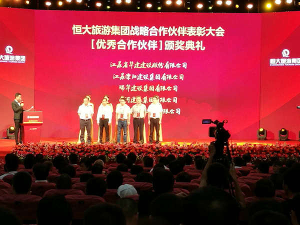 我司被恒大旅游集團評為“優秀合作伙伴” 時間:2017-08-18 3168 7月30日,恒大旅游集團在海南儋州海花島隆重舉辦“恒大旅游集團戰略合作伙伴表彰大會暨海花島動工兩周年慶”。我司憑借與恒大旅游集團的良好合作,被授予“優秀合作伙伴”稱號,公司項目經理呂正喜被評為“優秀項目經理”。公司副總、海南公司總經理陸俊代表公司參會并上臺領獎。 另:恒大旅游集團對正在主體施工的單位進行了2017年第二季度綜合評價,我司以綜合得分82.32分位列21家戰略合作伙伴之首。 (生小荃)