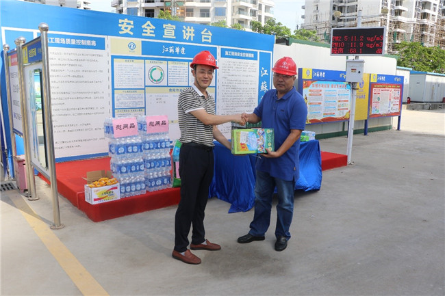 6月10日上午,海南分公司黨總支副書記、工會主席郁遠帶隊走訪慰問??诤愦蟆っ利惿稠椖坎?,檢查項目安全生產(chǎn)情況,并給奮戰(zhàn)在高溫、露天生產(chǎn)第一線的員工送去涼茶、綠豆、人丹等防暑用品,送去企業(yè)及工會組織的關(guān)懷。