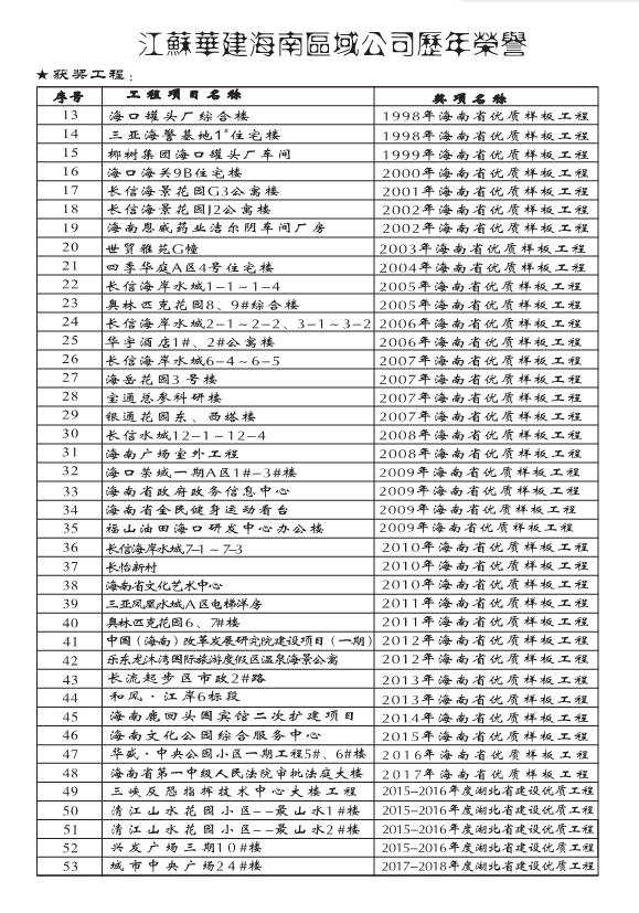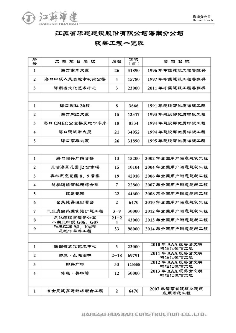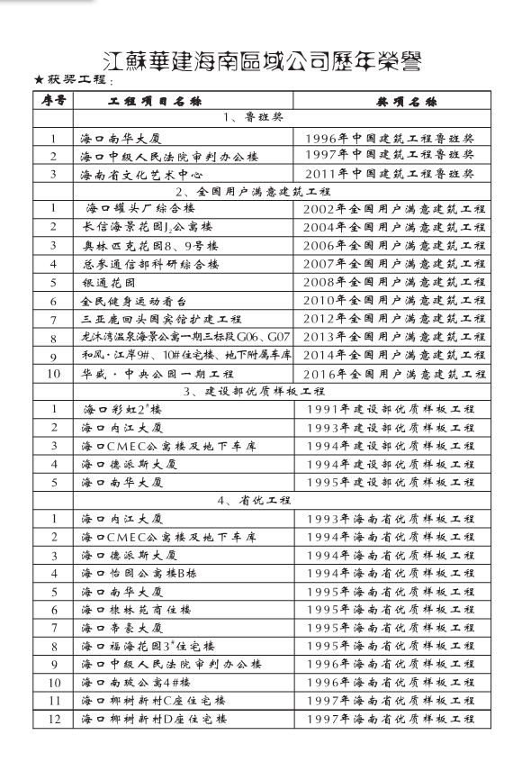 獲獎(jiǎng)工程一覽 時(shí)間:2019-01-01 13220 魯班獎(jiǎng) 全國(guó)用戶滿意建筑工程 全國(guó)AAA級(jí)安全文明標(biāo)準(zhǔn)化誠(chéng)信工地 海南省優(yōu)質(zhì)樣板工程 湖北省建筑優(yōu)質(zhì)工程