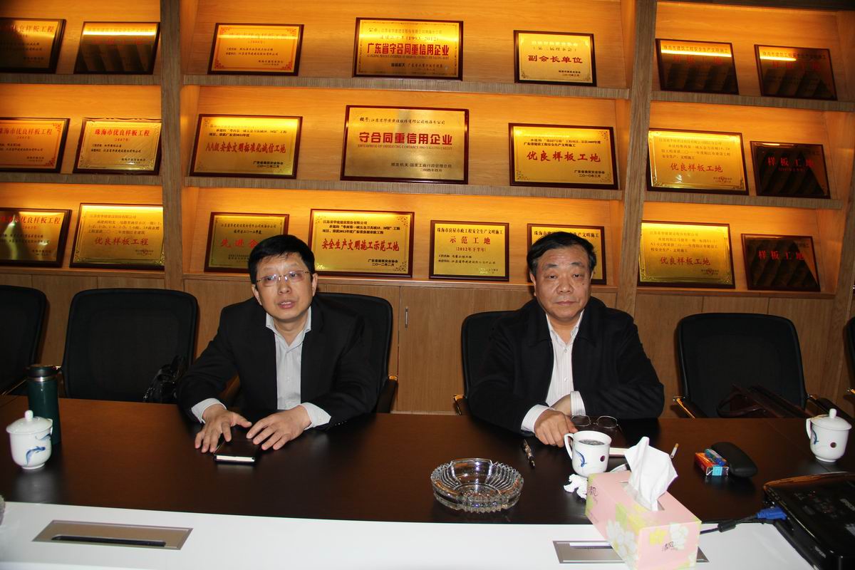 20131214,江蘇省建筑工程管理局副局長成際貴、江蘇省住房和城鄉建設廳駐南方辦事處主任朱躍斌到珠海區域公司視察調研黨政工團工作。珠海區域公司副總經理盧達、副總經理、總工程師周學軍及辦公室、經營處相關同志參加調研。盧達同志向調研組詳細匯報了珠海區域公司黨支部、工會在2013年的工作情況。成際貴同志在調研時強調:江蘇華建是知名的老牌國有企業,有影響、有實力,所以把江蘇華建作為在珠海調研的第一站。要求珠海區域公司完善黨建指導、堅持文化引領、追求綠色管理、推進綠色施工。要逐步培養自己的項目部,進一步打造華建品牌,從而帶動直管項目部取得更大的發展。要激發員工的創造性,讓每一個員工都用心做、用力做、和諧做、快樂做,把習慣變成優秀、使優秀成為習慣,從而充分地享受尊嚴。