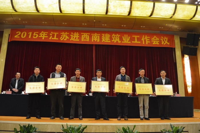 49日,2015年江蘇進西南建筑業工作會議在重慶召開,江蘇省住建廳建管局、重慶市建委有關領導出席會議。會議聽取了省廳駐西南辦事處2014年工作報告,同時對過去一年業績突出、表現優異的一批企業和個人進行了表彰。江蘇華建重慶分公司榮獲“2014年度江蘇進西南地區建筑施工先進企業”稱號,重慶分公司副總經理嚴正濤、二處主任余廣分別被表彰為2014年度江蘇出省施工優秀企業經理和先進個人,嚴正濤、黃橋獲評“優秀黨務工作者”。重慶分公司總會計師張勝濟代表公司在會上作了“適應新常態,打造在渝發展新模式”的交流發言