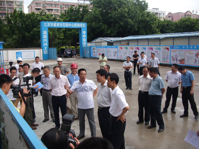 2015年6月23日下午,廣東省陽江市市委書記魏宏廣、市長丘志勇及市直有關(guān)部門主要負(fù)責(zé)人視察我公司承建的君怡花園中心商場項(xiàng)目,建設(shè)方君創(chuàng)房產(chǎn)董事長方興德、江蘇華建陽江分公司總經(jīng)理盧達(dá)現(xiàn)場陪同。魏書記在了解項(xiàng)目的工期進(jìn)展、安全文明施工及質(zhì)量等詳細(xì)情況后表示:本項(xiàng)目作為陽江市標(biāo)志性的城市綜合體項(xiàng)目,一定要高標(biāo)準(zhǔn)建設(shè)、高標(biāo)準(zhǔn)定位。城市綜合體建設(shè)項(xiàng)目是城市擴(kuò)容提質(zhì)的重點(diǎn)項(xiàng)目,各方要堅(jiān)定信心,克服困難,加快推進(jìn)項(xiàng)目建設(shè),力爭早日建成,為市民提供新的城市生活空間。