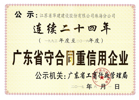 公司連續二十四年被廣東省工商行政管理局表彰為“守合同重信用企業”
