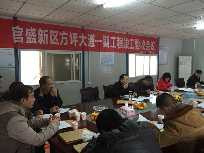 12月11日上午,廣安項目方坪大道一期竣工驗收會在項目現場會議室舉行。廣安區人大主任蔣成文、區委常委李榮盛、廣安區住建局副局長周春蘭,財政局、質監站相關領導和廣安項目指揮部各職能部門相關同志等出席驗收會。