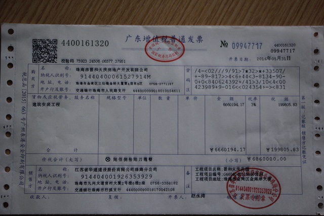 珠海區域公司第一張增值稅發票成功開具 時間:2016-06-01 2857 建筑行業“營改增”自5月1日起正式實施,公司領導高度重視“營改增”工作,先后完成了稅控設備軟硬件更新、數次的“營改增”知識培訓及交流會,并在主管國稅局完成了有關一般納稅人認定、增值稅發票額度調整、公司老項目備案等工作。 5月31日,財務處成功開具了第一張增值稅普通發票,此票為公司第五項目部承擔施工任務的晉和天慶花園總承包工程使用,走出了公司“營改增”工作的堅實一步。