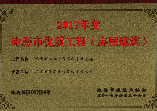 公司2項目獲評珠海市房屋建筑優質工程 時間:2017-05-16 3767 近日,珠海市建筑業協會發文公布2017年度珠海市優質工程名單,我司承建的珠海航空標準件保稅倉儲基地和丹田廣場二期的2個項目榜上有名。