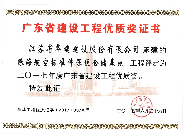 近日,廣東省建筑業(yè)協(xié)會(huì)公布2017年度廣東省建設(shè)工程優(yōu)質(zhì)獎(jiǎng)名單。公司施工總承包的珠海航空標(biāo)準(zhǔn)件保稅倉(cāng)儲(chǔ)基地、丹田廣場(chǎng)二期、君怡花園小區(qū)中心商場(chǎng)等三個(gè)項(xiàng)目入選,受到協(xié)會(huì)表彰。