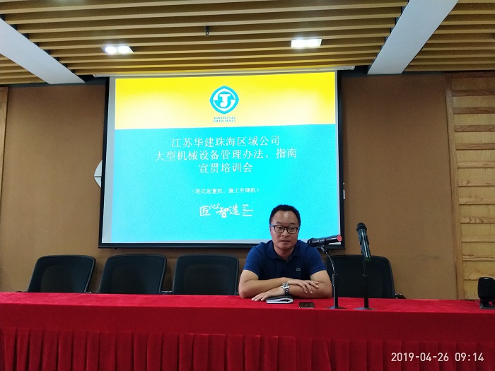 施工安全設備處對總部下發的《大型機械設備管理辦法》及廣東省下發的《廣東省建筑起重機械防御臺風安全技術指引(試行)》兩份文件進行了詳細地解讀,把公司總部及珠海區域公司關于大型機械設備管理的基本規定和要求向項目部同仁進行了宣貫,并就總部下發的《大型機械設備管理指南》,從合作單位的選擇、設備的選型、方案的編制審核、現場的安裝拆卸、日常檢查要點及安全資料等多方面向項目部同仁作了細致地講解。