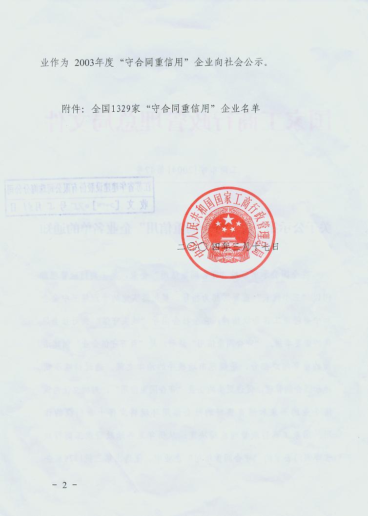 2004年國家級守合同重信用企業