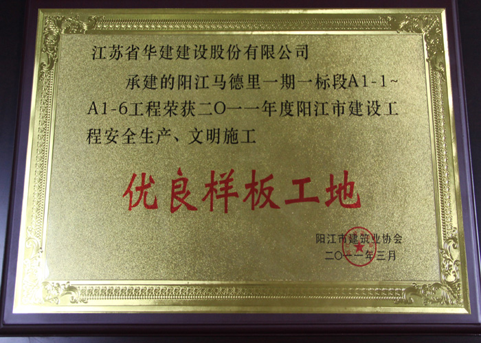 2011陽江馬德里項(xiàng)目獲陽江市安全生產(chǎn)文明施工優(yōu)良樣板工地