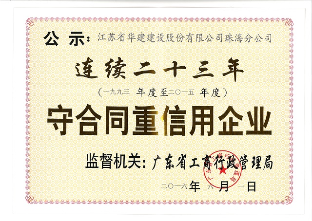 2016廣東省連續(xù)24年守合同重信用企業(yè)