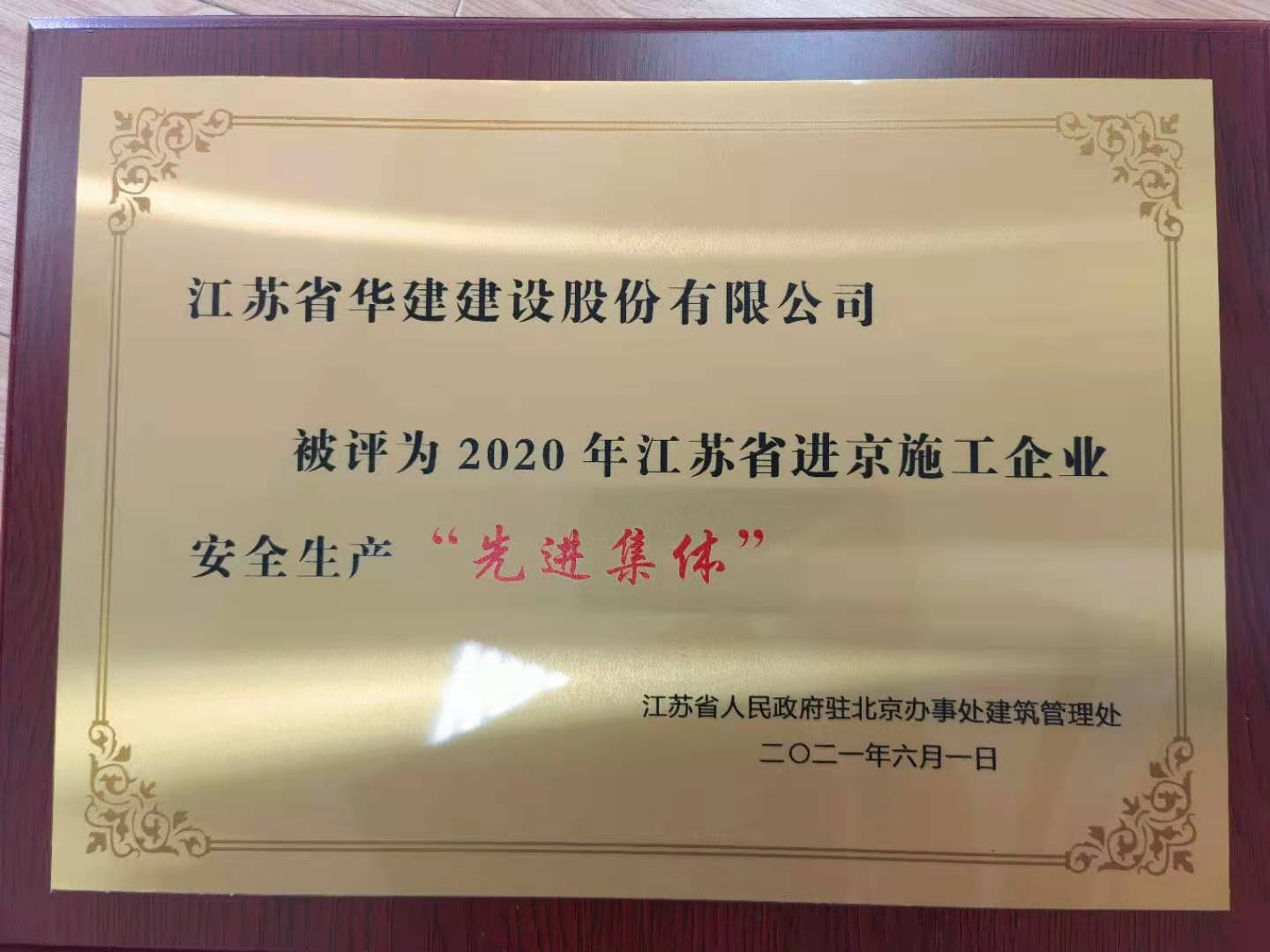 近日從江蘇省駐京辦傳來喜訊,江蘇華建北京分公司被評為2020年度江蘇省進京施工企業(yè)安全生產(chǎn)...