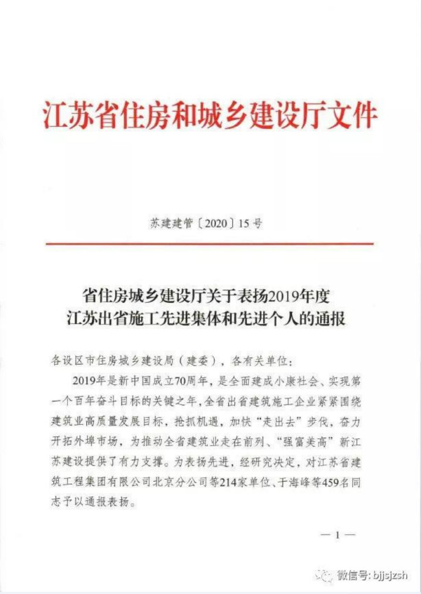 近日,江蘇華建北京分公司被江蘇省住建廳表彰為“2019年度出省建筑施工先進集體”。當前疫情...