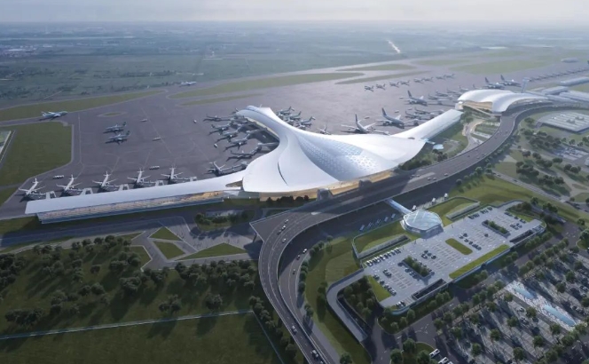 4月2日上午,揚州泰州國際機場二期擴建工程航站樓舉行主體封頂儀式,江蘇華建黨委委員、副總經(jīng)...