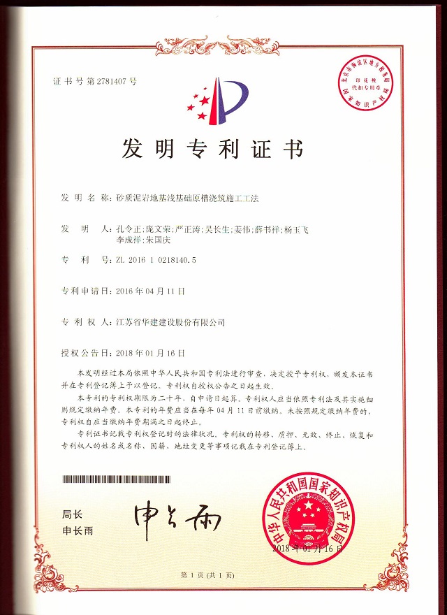 近日,從國家知識產權局傳來好消息,重慶分公司申報的技術成果《砂質泥巖地基淺基礎原槽澆筑施工...