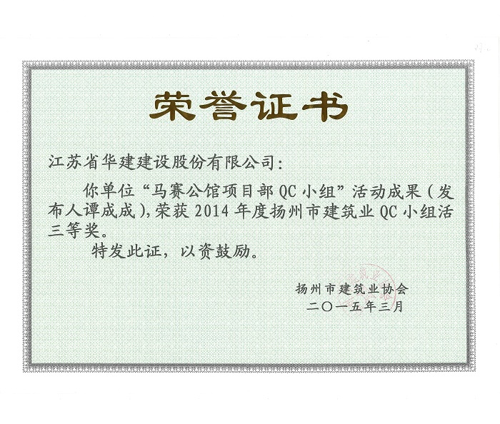 近日,揚(yáng)州市建筑業(yè)協(xié)會(huì)發(fā)文表彰了2015年度全市建筑業(yè)QC小組活動(dòng)成果獎(jiǎng),公司共有5項(xiàng)成果...