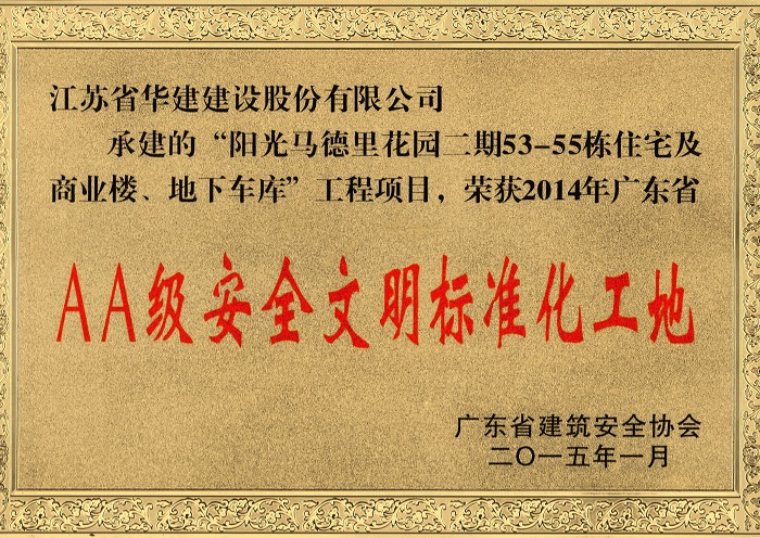 陽光馬德里二期工程榮獲2014年廣東省AA級安全文明標準化工...