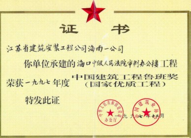 ??谑兄屑壢嗣穹ㄔ簩徟修k公樓位于??谑薪鹩盥?號,1995年4月竣工,1996年6月被評為海南省優質工程,并榮獲海南省優秀建筑二等獎,1997年12月榮獲1997年度建筑工程魯班獎。