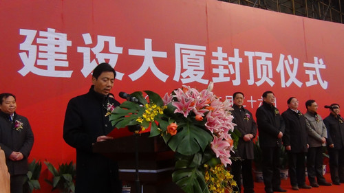 揚州建工控股有限責(zé)任公司董事長、黨委書記陸金龍董事長在封頂儀式上致辭。他說,建設(shè)大廈是體現(xiàn)市委、市政府民生城建理念的標(biāo)志性項目之一,其中的城市規(guī)劃展覽館是提升城市品質(zhì)、展示城市未來宏偉藍(lán)圖、宣傳城市美好形象的重要陣地,市民中心是市民活動、交流、服務(wù)和區(qū)域文化展示的固定場所,這個項目的建設(shè)對進(jìn)一步提升城市基礎(chǔ)設(shè)施建設(shè)水平,完善城市功能,提升城市品質(zhì),建設(shè)“三個揚州”都具有深遠(yuǎn)和重要的意義。項目自2010年5月2日開工以來,作為項目投資建設(shè)主體,建工控股公司認(rèn)真貫徹落實市委、市政府的指示精神,及時選派精干力量,切實優(yōu)化建設(shè)方案,合理調(diào)配資源,主動協(xié)調(diào)關(guān)系,確保項目建設(shè)高效、有序、廉潔推進(jìn)。承擔(dān)建設(shè)代理任務(wù)的江蘇華建和承擔(dān)施工任務(wù)的揚建集團(tuán)、揚安集團(tuán)等單位發(fā)揚市直施工企業(yè)敢打善拼、精益求精的優(yōu)良作風(fēng),精心組織,精心施工,確保了質(zhì)量、工期和現(xiàn)場文明,體現(xiàn)了我市建筑精英的實力和水平。陸董事長指出,工程順利封頂標(biāo)志著項目建設(shè)進(jìn)入了一個新的階段,他希望項目管理團(tuán)隊和全體建設(shè)單位進(jìn)一步樹立大局意識、責(zé)任意識和精品意識,繼續(xù)加強(qiáng)與相關(guān)部門單位的協(xié)調(diào)配合,克服一切困難,瞄準(zhǔn)既定目標(biāo),努力把建設(shè)大廈建成領(lǐng)導(dǎo)放心、群眾滿意、業(yè)主認(rèn)可的優(yōu)質(zhì)工程、民心工程、標(biāo)志工程,為精致?lián)P州增添一抹亮麗的風(fēng)景。